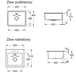 W większości przypadków rzeczywista głębokość komory zlewu podblatowego i nakładanego jest bardzo podobna i wynosi około 20–22cm.